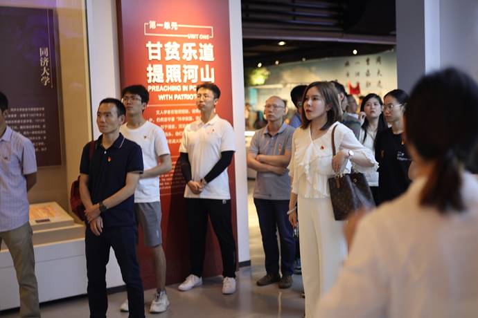 下午,党员们前往“万里长江第一古镇”李庄,走进李庄文化抗战博物馆。在讲解员的带领下,了解李庄在抗战时期为赓续中华文脉做出的卓越贡献,与历史对话。现场布置栩栩如生,运用了多媒体技术、人物雕塑和实物等生动还原了历史场景,展示了李庄古镇的抗战文化。其中同济大学迁往李庄古镇的背后故事,让党员们感慨万千——同样作为教育者,应当延续红色基因,牢记先辈无私地奉献,充分发挥教师传道解惑的初心,延续共产党人坚定理想信念,不断提高党性,落实立德树人根本任务。